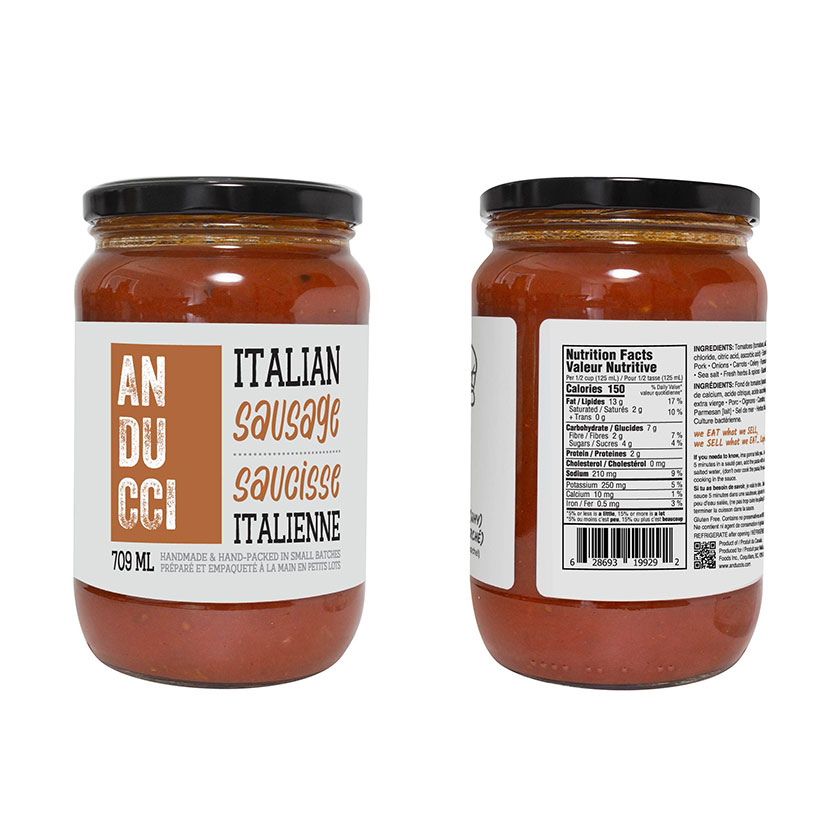 INGREDIENTS: Tomatoes (tomatoes, sali, calcium chloride, citric acid, ascorbic acid) • Extra virgin oliva oil • Pork • Onions • Carrots • Celery • Parmesan cheese (milk) • Sea salt • Fresh herbs & spices • Bacterial culture.